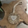 Apportez une touche naturelle et authentique avec cette embrasse en raphia avec un coeur en coquillages montés sur un collier de billes de bois. Sublimera vos rideaux ou suspendu à une porte d'armoire, poterie etc. Petite touche décorative unique et bohème chic.