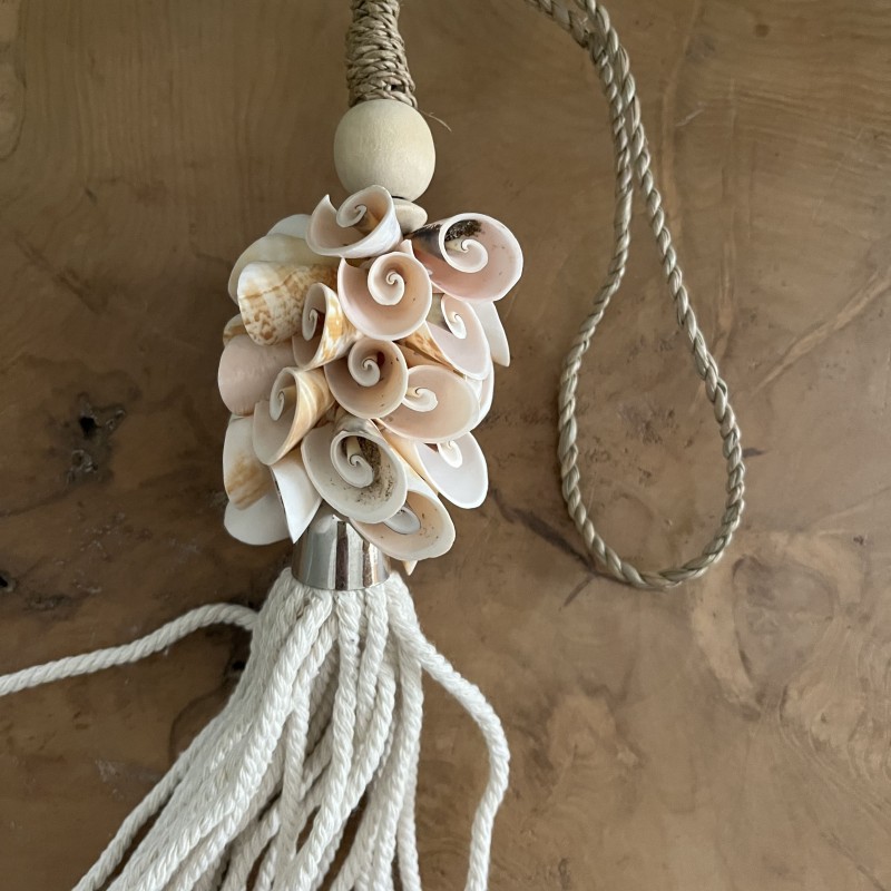 Apportez une touche naturelle et authentique avec cette embrasse ou suspension avec des coquillages rose montés sur une tresse de raphia. Sublimera vos rideaux ou suspendu à une porte d'armoire, poterie etc. Petite touche décorative unique et bohème chic.