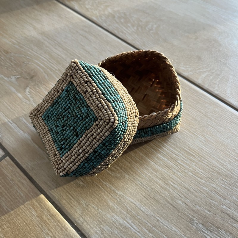 Magnifique boite XXS en bambou habillées de perles minutieusement tissées à la main.