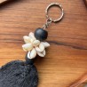 Porte clés décoré de coquillages naturels et feuille en coton noir; une petite touche bohème chic à vos clés, sacs ou accessoires.