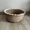 Panière en feuille de bananier séchées et contour coton blanc crocheté.