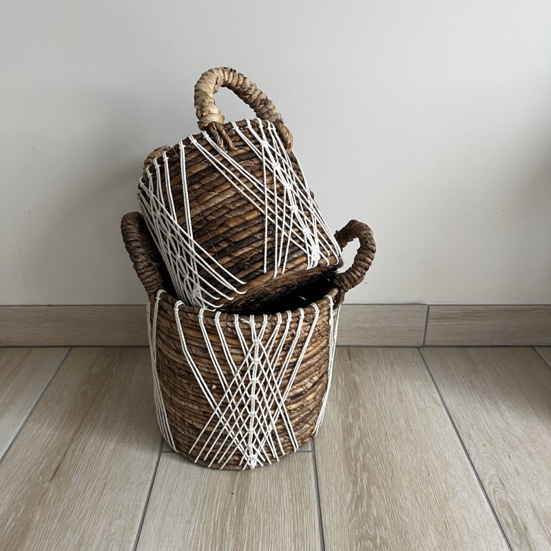 Panier avec anses en feuilles de bananier séchées et coton blanc
