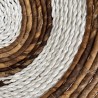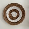 Suspension murale ronde en feuilles de bananier séchées naturel et blanc.
