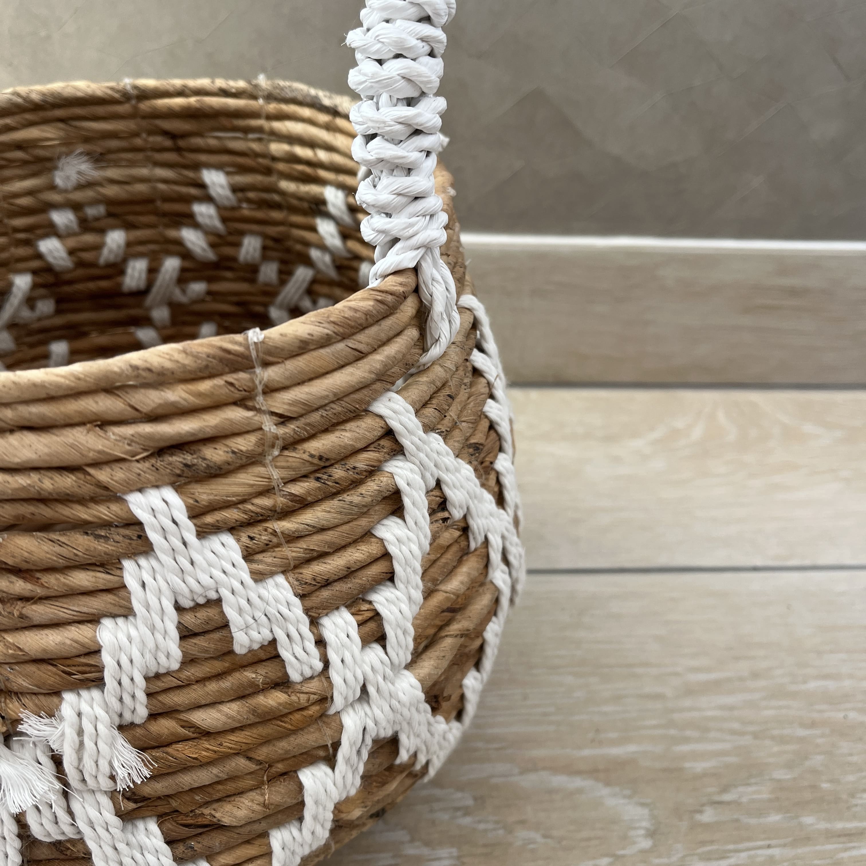 Panier avec anses en feuilles de bananier séchées et coton blanc